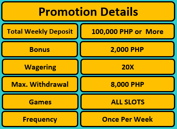 1. Deposit at least PHP 100,000 from Monday to Friday.